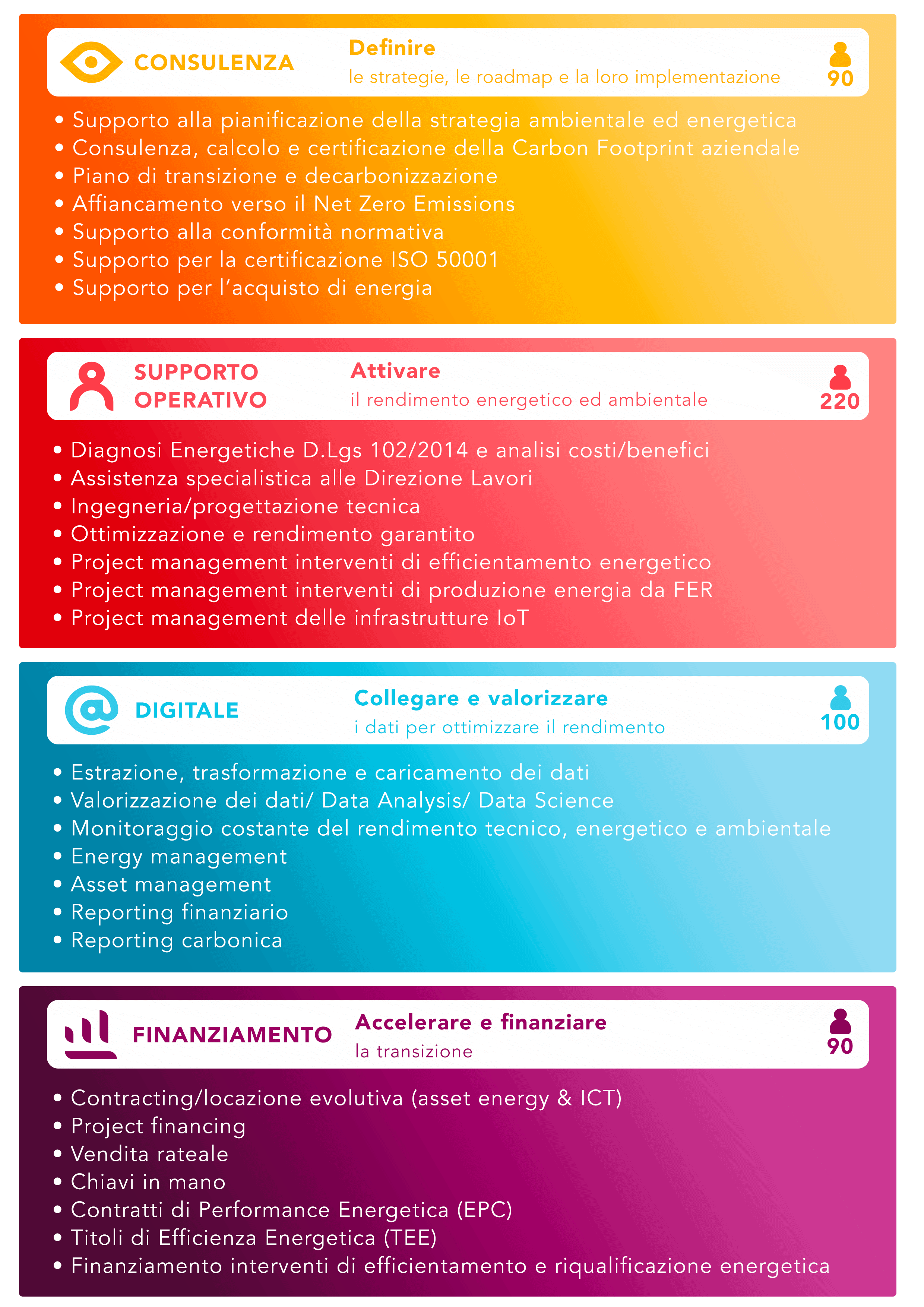 GreenFlex Industria Industria L’industria è un settore chiave per la riduzione del consumo energetico e delle emissioni di gas a effetto serra. Noi la aiutiamo a trasformarsi Siete operatori nel settore agroalimentare, chimico, farmaceutico, dell’abbigliamento, dei trasporti, dell’energia o dei servizi ambientali e dovete affrontare diverse sfide economiche e ambientali lungo tutta la vostra catena di valore: A livello dei tuoi prodotti per stabilire una catena di approvvigionamento sostenibile e più locale attorno a circuiti brevi e aziende resilienti per prodotti più responsabili A livello di sito per sostenere il vostro strumento industriale, per sviluppare le linee di produzione e le apparecchiature per migliorare la competitività riducendo i consumi energetici e le emissioni di gas serra A livello di organizzazione per integrare il processo di conformità alle normative in vigore nella vostra strategia di decarbonizzazione globale e soddisfare le aspettative dei vostri stakeholder (clienti, ONG, media, ecc.) A livello di territorio per contribuire a progetti di circuiti brevi e di approvvigionamento locale e quindi contribuire a piani generali di rivitalizzazione economica, agli schemi direzionali alimentari, risorse ed energia (valorizzazione del calore o vapore residuo con altri industriali o reti di teleriscaldamento in una logica di ecologia industriale ) Per rispondere a questo, GreenFlex vi supporta, grazie alla sua multi-expertise tecnica, digitale e finanziaria a: Costruire una roadmap di sviluppo sostenibile (per la vostra azienda o i vostri prodotti), decarbonizzazione o efficienza energetica per raggiungere obiettivi finanziari (superamento delle quote di carbonio, aumento dei prezzi dell’energia e della CO 2 , riduzione delle tariffe di utilizzo della rete di trasporto) dando priorità agli investimenti in base alle vostre sfide (ambiente, salute , sicurezza, produzione) Supportare la trasformazione della vostra offerta: comprendere le aspettative dei consumatori, promuovere le innovazioni e cambiamenti di modello Identificare i progetti strategici ammissibili a regimi di sovvenzione pubblici (Francia 2030, aiuti ADEME) e privati (Titoli di Efficienza Energetica) e soluzioni di finanziamento di terzi combinandoli per consentirti di ottenere il miglior ritorno sull’investimento, preservare il flusso di cassa e la capacità di indebitamento Implementare questi progetti in Project Management Assistance, Energy Performance Contract o chiavi in mano su un variegato insieme di expertise (elettricità, calore, freddo, vapore, carbonio, energie rinnovabili come fotovoltaico, biomasse, biogas, geotermia, ecc.) e apparecchiature (illuminazione , HVAC, caldaie, refrigeratori, stazioni di ricarica per veicoli elettrici, ecc.) presso la vostra sede o nel vostro territorio nell’ambito di progetti di ecologia industriale (reti di calore e vapore locali, ad esempio) I dati sono sempre più numerosi e spesso dispersi in azienda. Per rispondere a una specifica problematica industriale, la DataScience consente di incrociare i dati e analizzarli per dargli un significato al fine di sviluppare piani d’azione. Cambiare rotta con GreenFlex: Un unico interlocutore con supporto su misura per pensare al vostro approccio in modo globale e accelerare l’implementazione del piano d’azione supportandovi dalla progettazione all’azione integrando supporto umano, digitale e finanziario Rapporti consolidati con importanti istituzioni +310 esperti di energia e sviluppo sostenibile al vostro fianco nei nostri 20 uffici in Europa per consigliarvi e implementare i vostri progetti Volete conoscere le soluzioni di supporto per l’industria? I nostri esperti sono qui per voi Contattaci